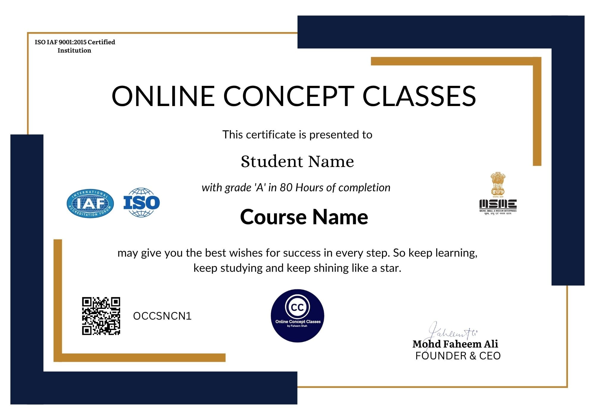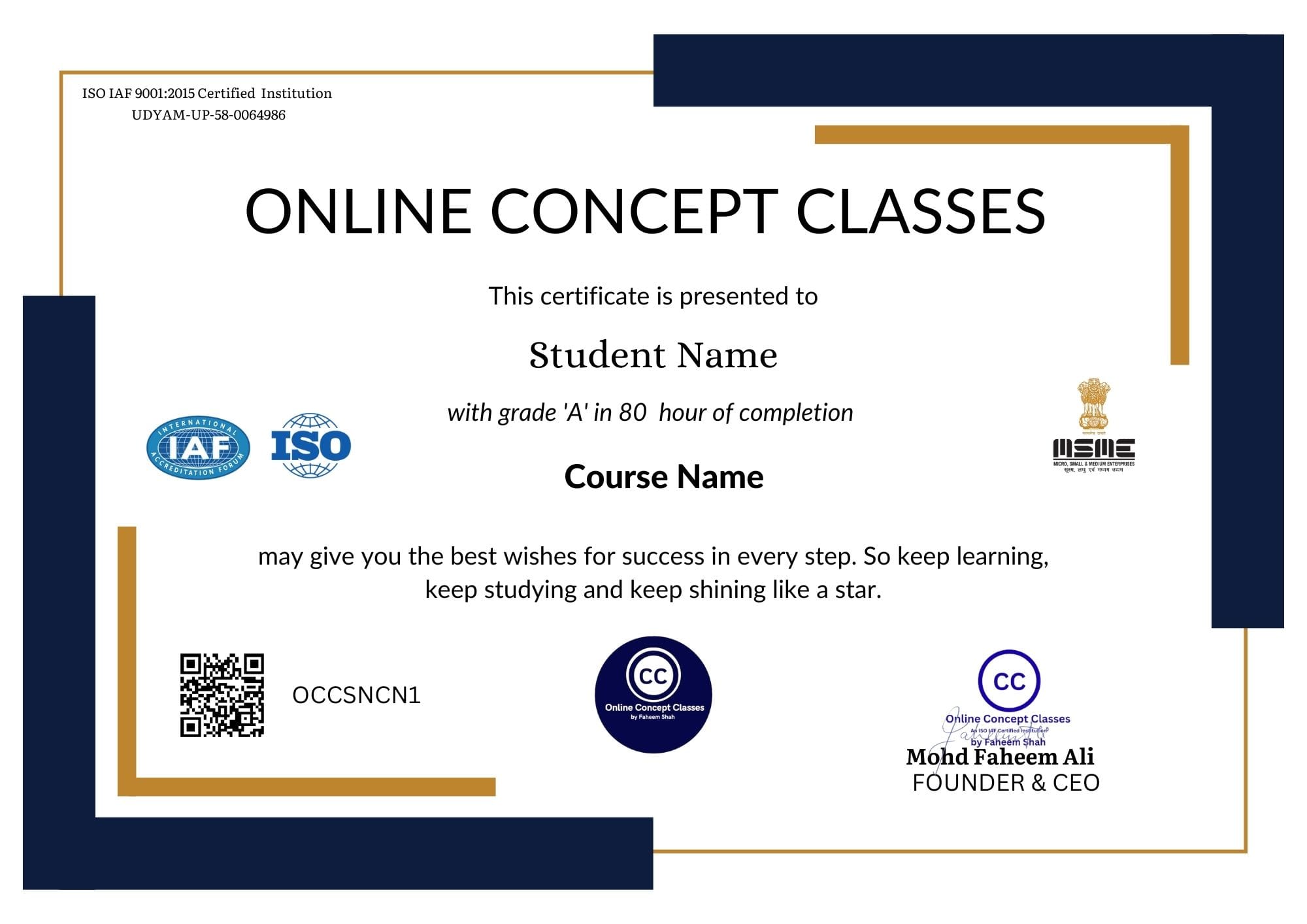 Founder and CEO –> Faheem Shah –> Online Concept Classes